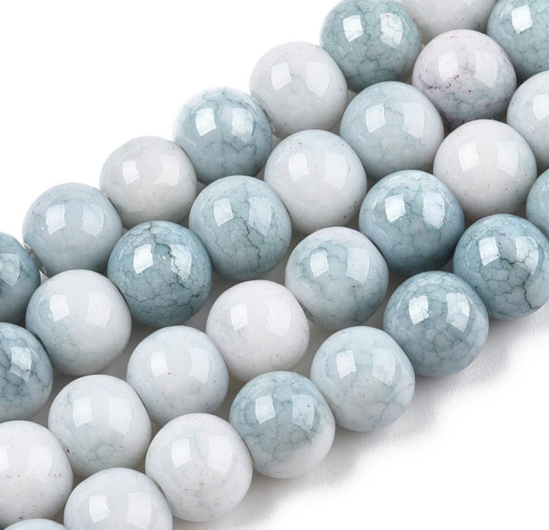 Glaskralen – IJsblauw marmer – 8 mm – ca. 105 stuks