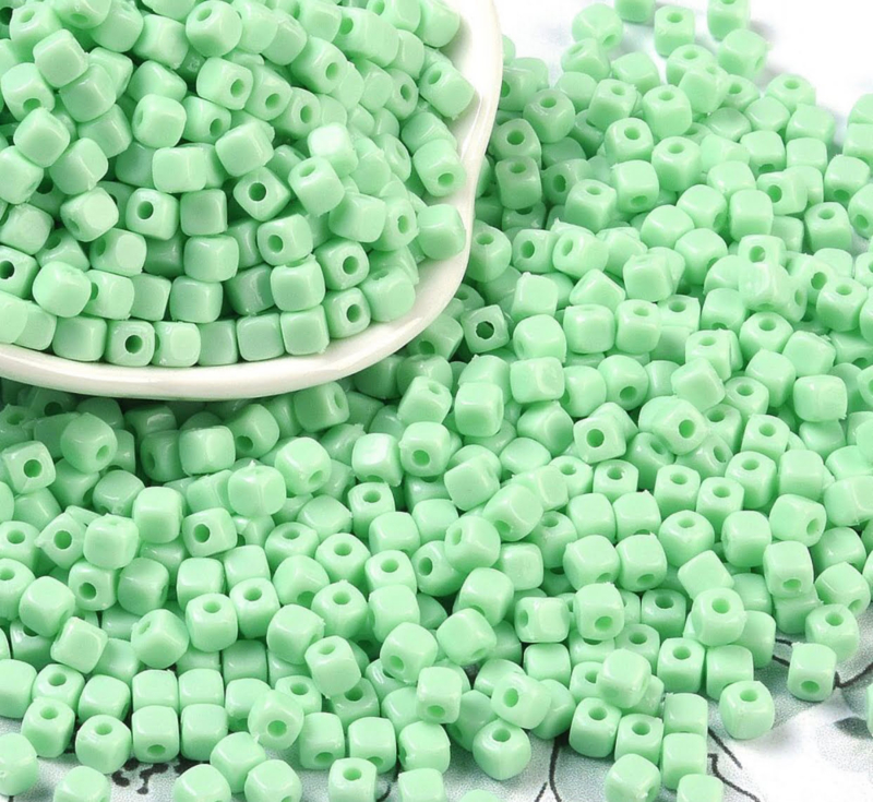 Kunststof kubus kralen 4mm mintgroen – per 10 gram