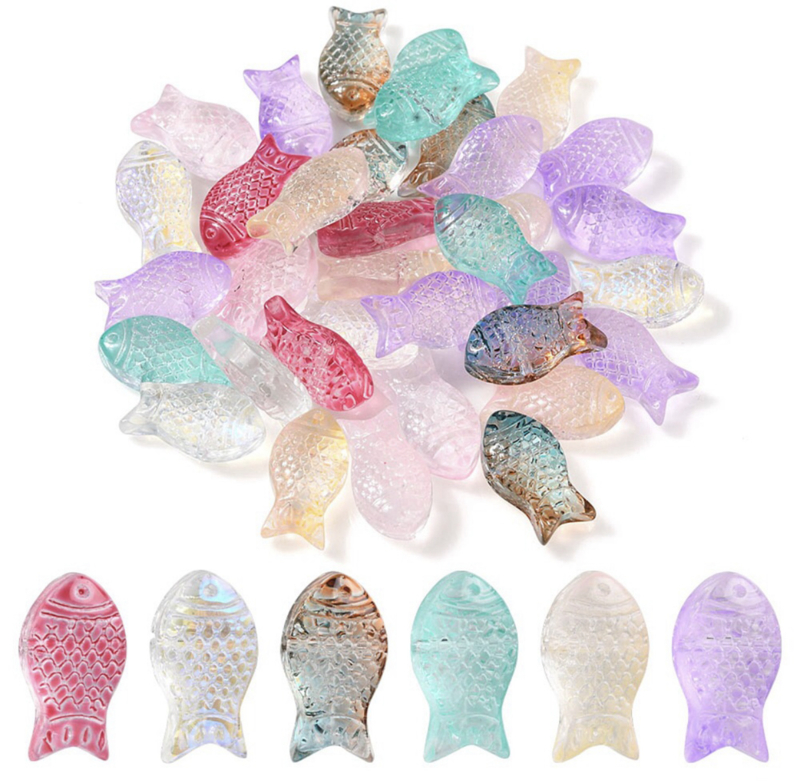 Deze vrolijke glaskralen in de vorm van een visje zijn perfect voor speelse en zomerse sieraden. De mix bestaat uit verschillende kleuren, wat zorgt voor een levendig en uniek effect in armbanden, kettingen en kinderaccessoires. Dankzij het gladde glas en het rijggat van 1mm zijn de kralen eenvoudig te verwerken.