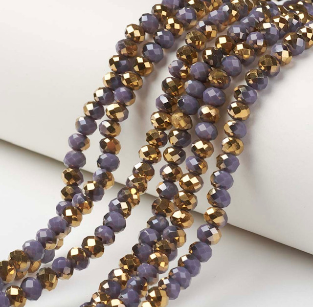 Glaskralen facet paars goud – 6x5mm – ca. 80 stuks