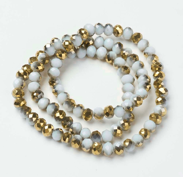 Glaskralen facet wit/goud 6x5mm – ca. 80 stuks