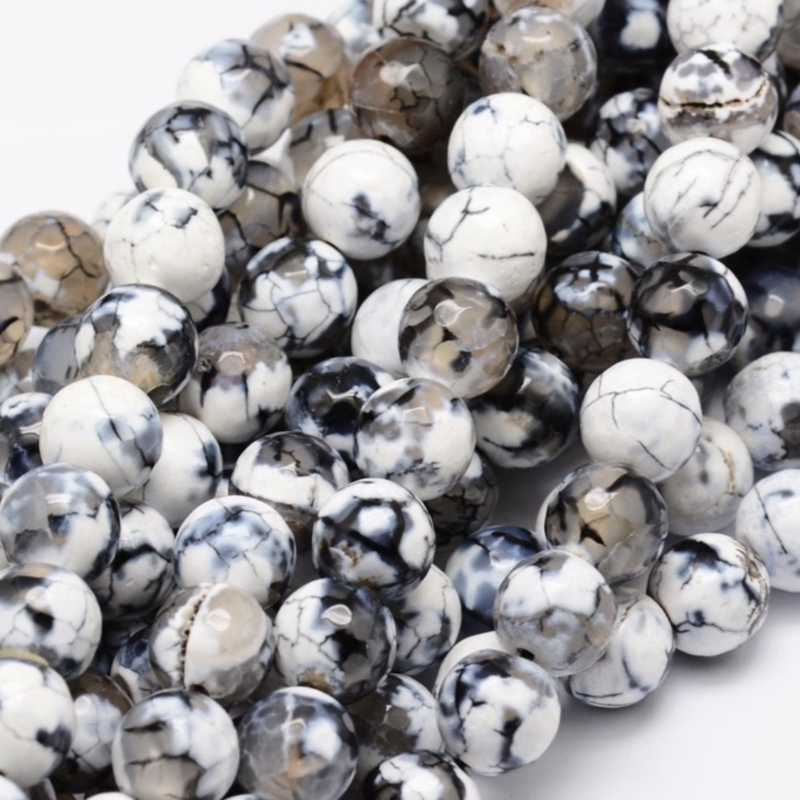 Natuursteen kralen agaat zwart-wit mix – 8 mm – ca. 47 stuks