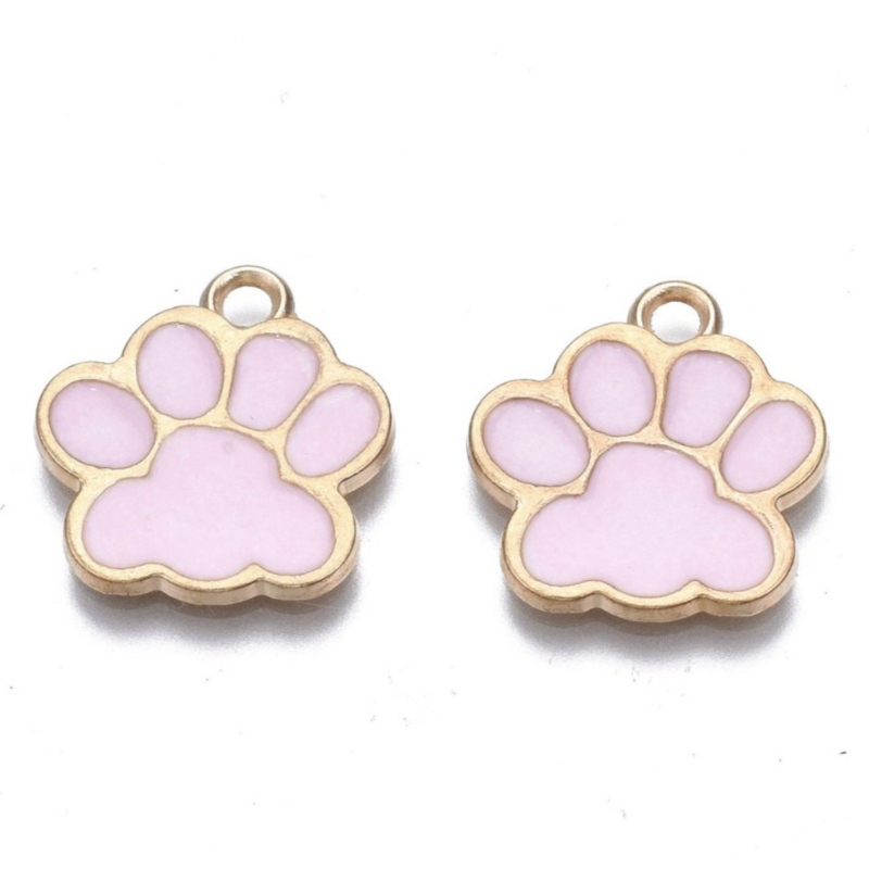 OverzichtDeze leuke bedels in de vorm van een dierenpootje zijn uitgevoerd in een zachte roze kleur met een goudkleurige rand. Perfect voor het maken van sieraden met een dierenthema, zoals armbanden, kettingen of sleutelhangers.