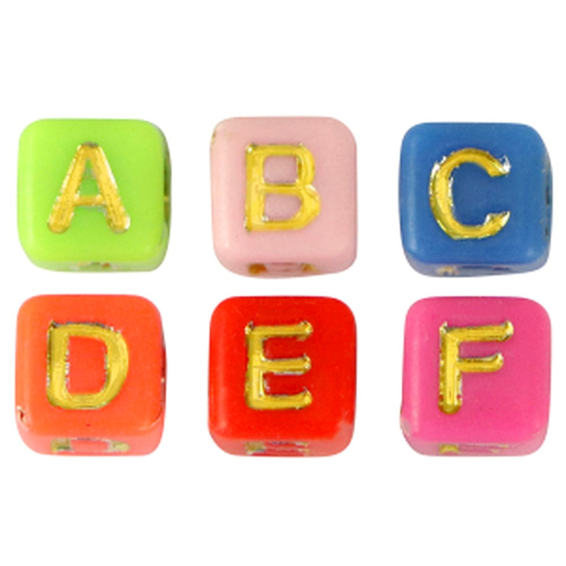 OverzichtDeze letterkralen in kubusvorm zijn gekleurd met gouden letters en ideaal voor het maken van naamarmbandjes, sleutelhangers en andere persoonlijke sieraden. De vrolijke kleuren in combinatie met de gouden letters geven je creaties een speelse en luxe uitstraling.