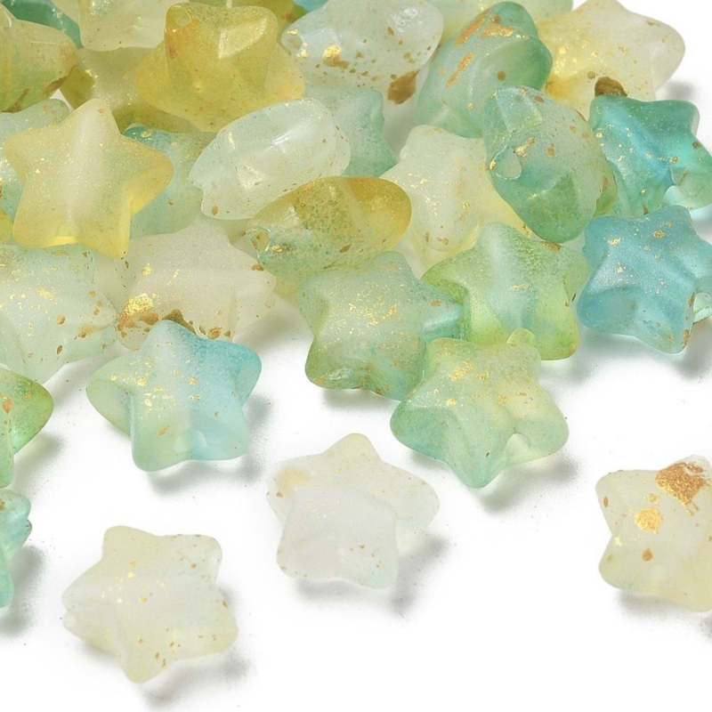 OverzichtDeze kralen in stervorm hebben een zachte mix van groengele tinten en zijn afgewerkt met gouden spetters. Door de matte afwerking en vrolijke stervorm krijgen je sieraden een frisse, lichte en speelse uitstraling. Ideaal voor armbanden, kettingen, oorbellen en andere creatieve ontwerpen.