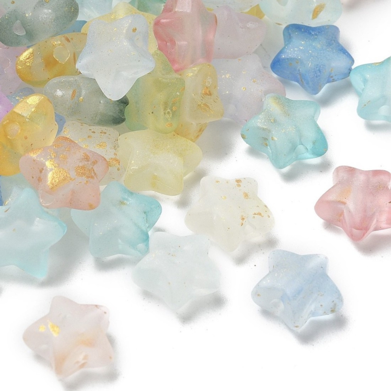 OverzichtDeze kunststof kralen in stervorm hebben een prachtige mix van zachte pastelkleuren zoals roze, blauw, geel en mint, gecombineerd met speelse gouden spetters. Door de matte afwerking en de unieke kleurenmix zijn deze kralen ideaal voor het maken van vrolijke armbanden, kettingen, oorbellen en andere creatieve projecten.