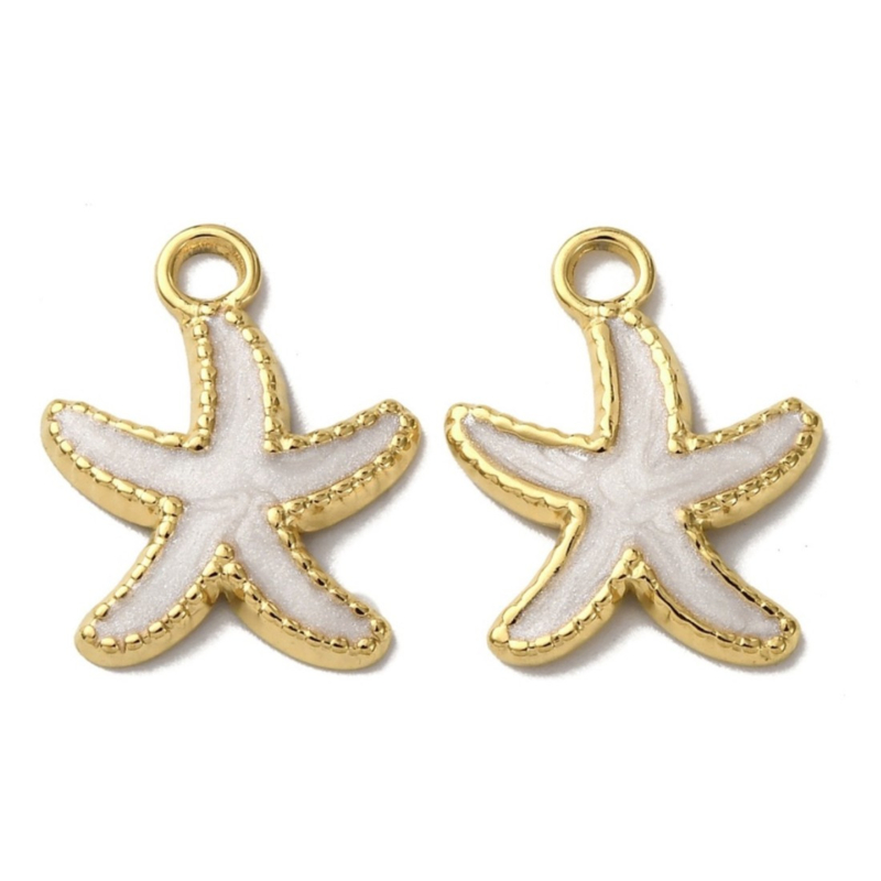 OverzichtDeze stainless steel bedel in de vorm van een zeester heeft een elegante witte kleur met een goudkleurige rand. De combinatie van het strakke design en de zomerse uitstraling maakt deze bedel perfect voor het maken van armbanden, kettingen, oorbellen en andere creatieve sieradenprojecten.
