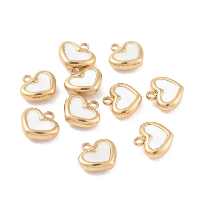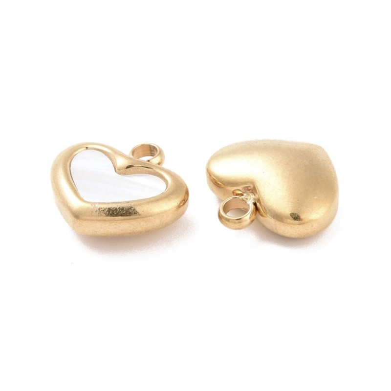 Stainless steel bedel hart met schelp goudkleurig – 11×11×4 mm – per stuk