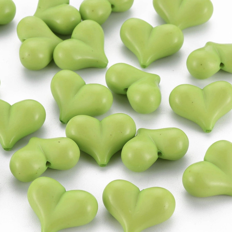 Deze appelgroene hart kralen hebben een frisse en speelse uitstraling. Perfect voor kleurrijke sieraden.
