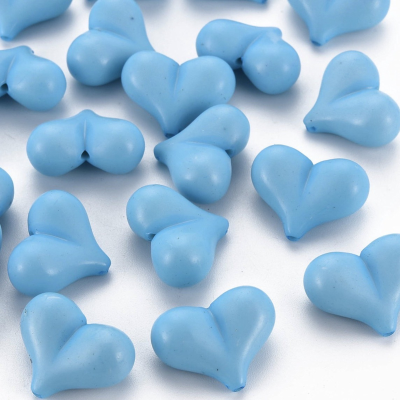 Kunststof kralen grote harten lichtblauw – 17x22x10mm – rijggat 1,4mm – 5 stuks