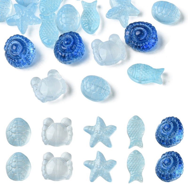 Glaskralen oceaan mix blauw – 25 stuks – diverse vormen
