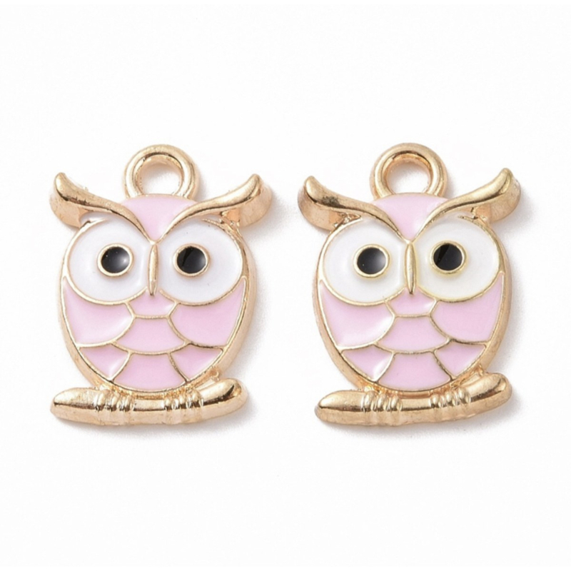 Geef je sieraden een speelse, vrolijke touch met deze roze uil bedels. Het glanzende accent en de lieve blik laten je ontwerpen meteen opvallen. Leuk voor armbanden, kettingen, oorbellen en sleutelhangers.