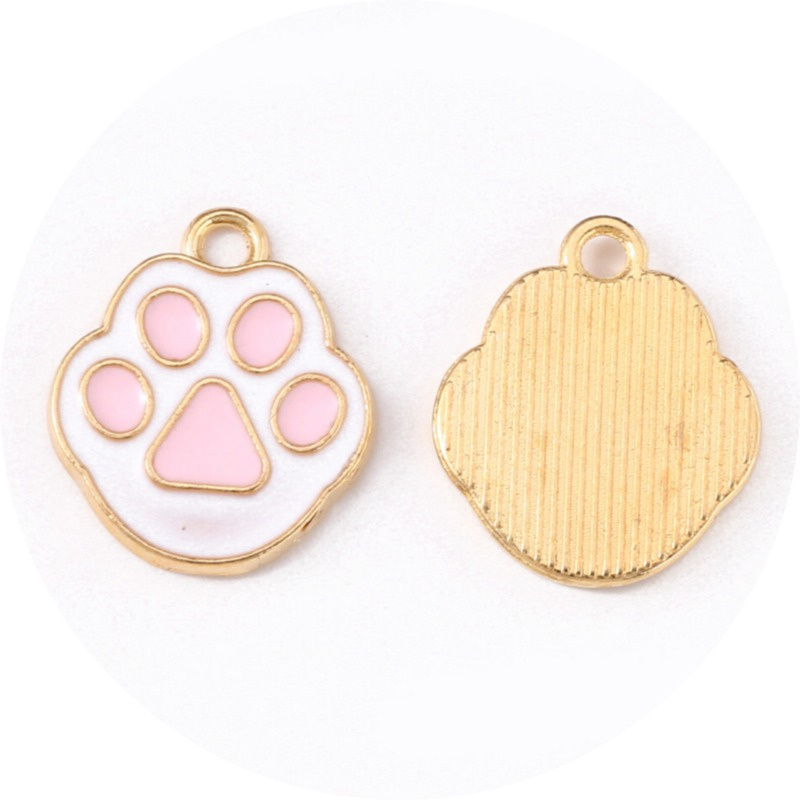 Cute pootafdruk-bedels met roze details en witte basis. Leuk voor huisdier-armbanden of sleutelhangers.