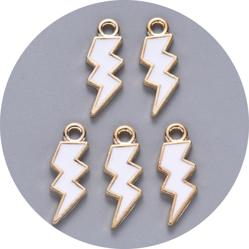 Trendy bliksemschicht-bedels in wit emaille. Geef je sieraden een speelse, edgy touch.