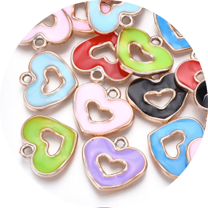 Romantische hart bedels met “Love” en parelmoer-look emaille; ideaal voor cadeaus en friendship sieraden.