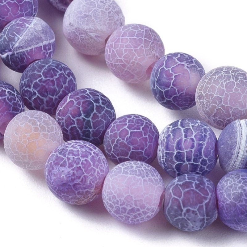 Paarse crackle agaat kralen met een decoratief craquelé patroon. Deze natuursteen kralen geven sieraden een luxe en speelse uitstraling.