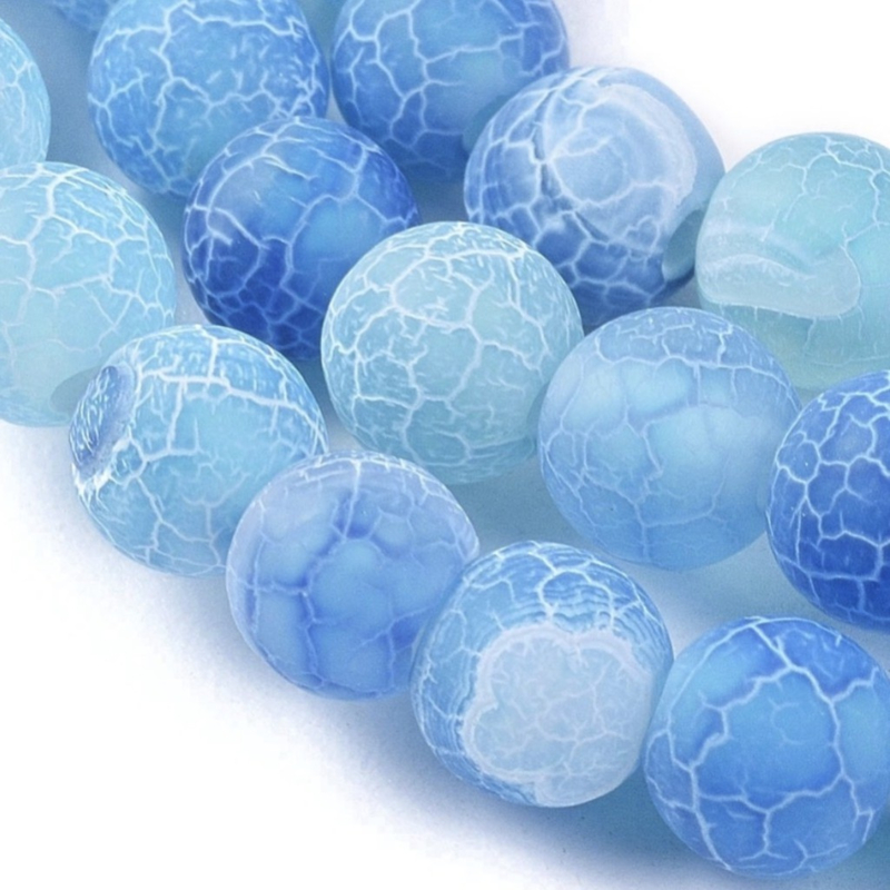 Blauwe crackle agaat kralen met een levendig craquelé effect. Geschikt voor opvallende sieraden en mooie kleuraccenten in armbanden en kettingen.